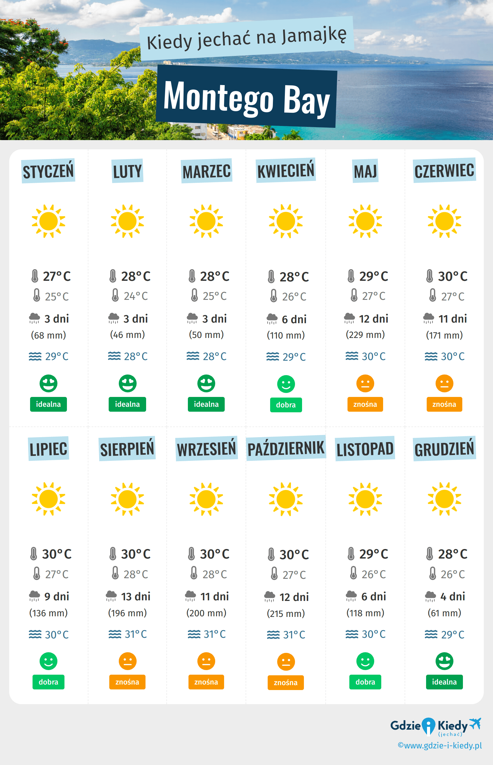 Pogoda na Jamajce w poszczególnych miesiącach