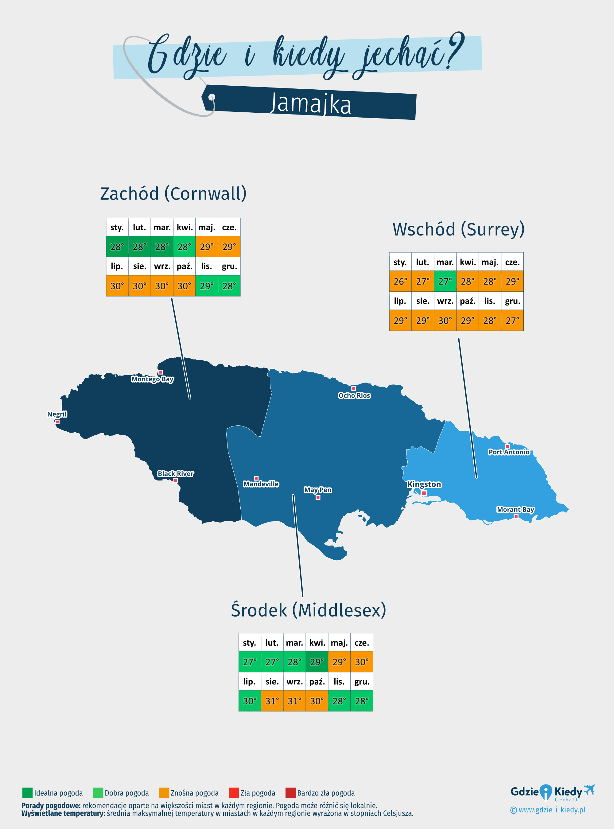 Poniżej przedstawiam kilka informacji na temat sezonów na Jamajce: