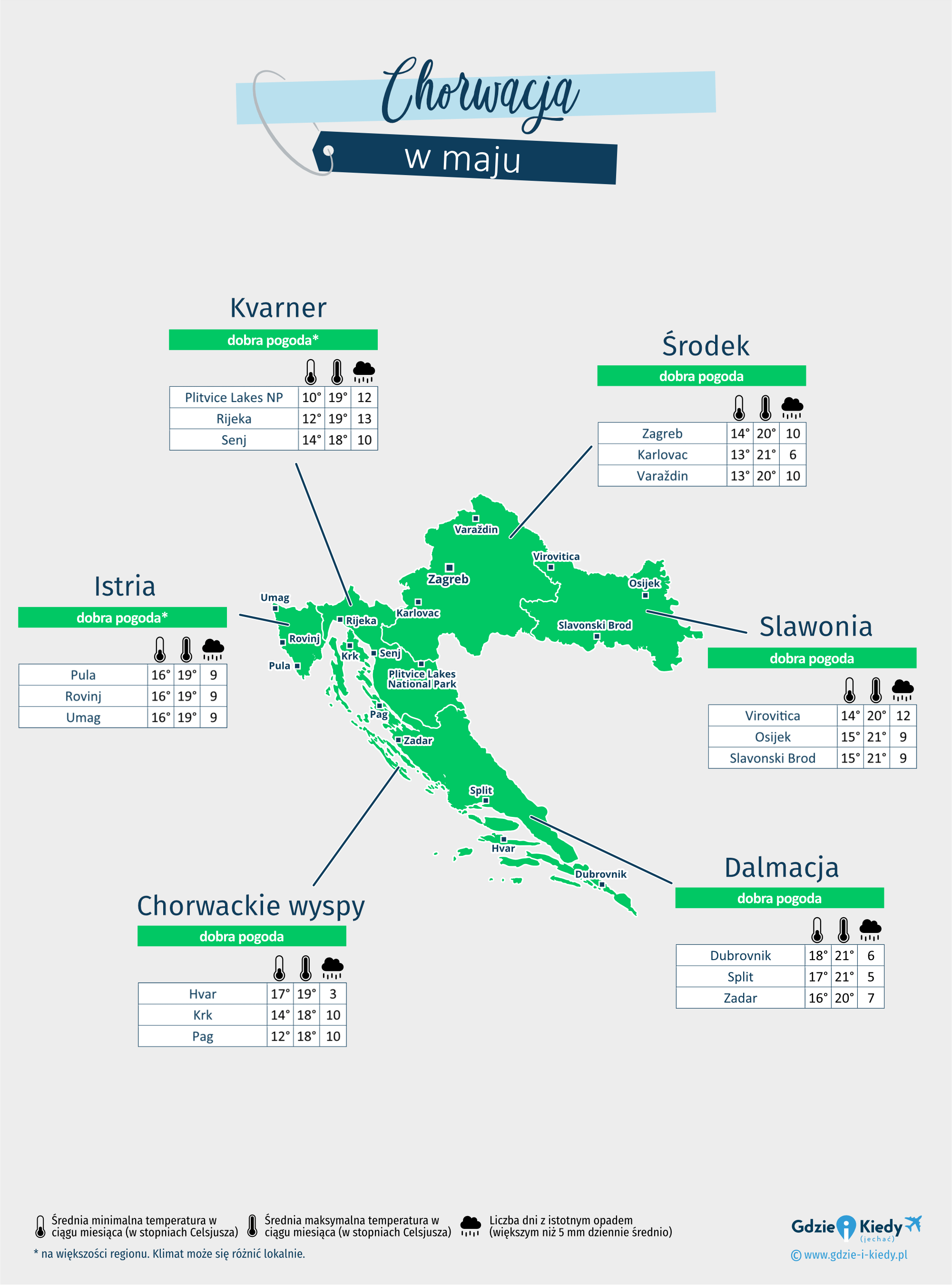 Poniżej znajduje się lista najlepszych miesięcy na odwiedziny w Chorwacji:
