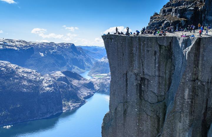 - Wspinaczka na szczyty, takie jak Preikestolen